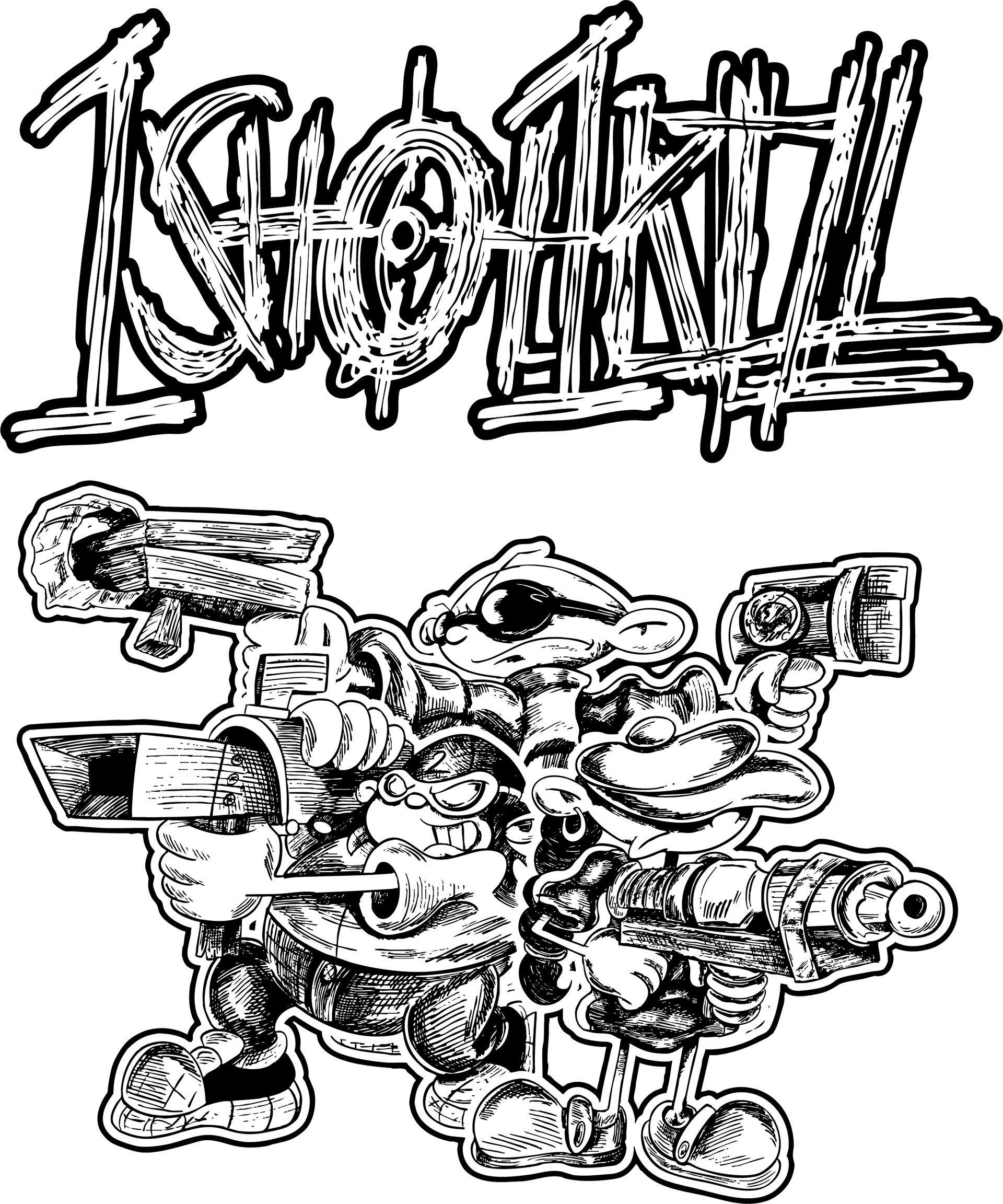 Brand identity for Inland Empire hardcore band 1Shot1Kill, inspired by Codename: Kids Next Door, including a reimagined logo and illustrated graphic featured on a tour campaign, compact disc, and merchandise